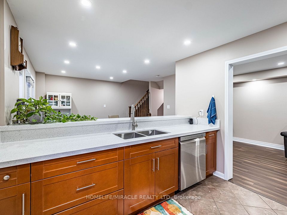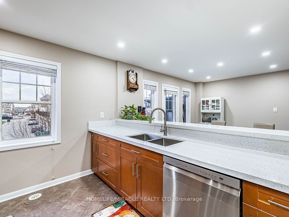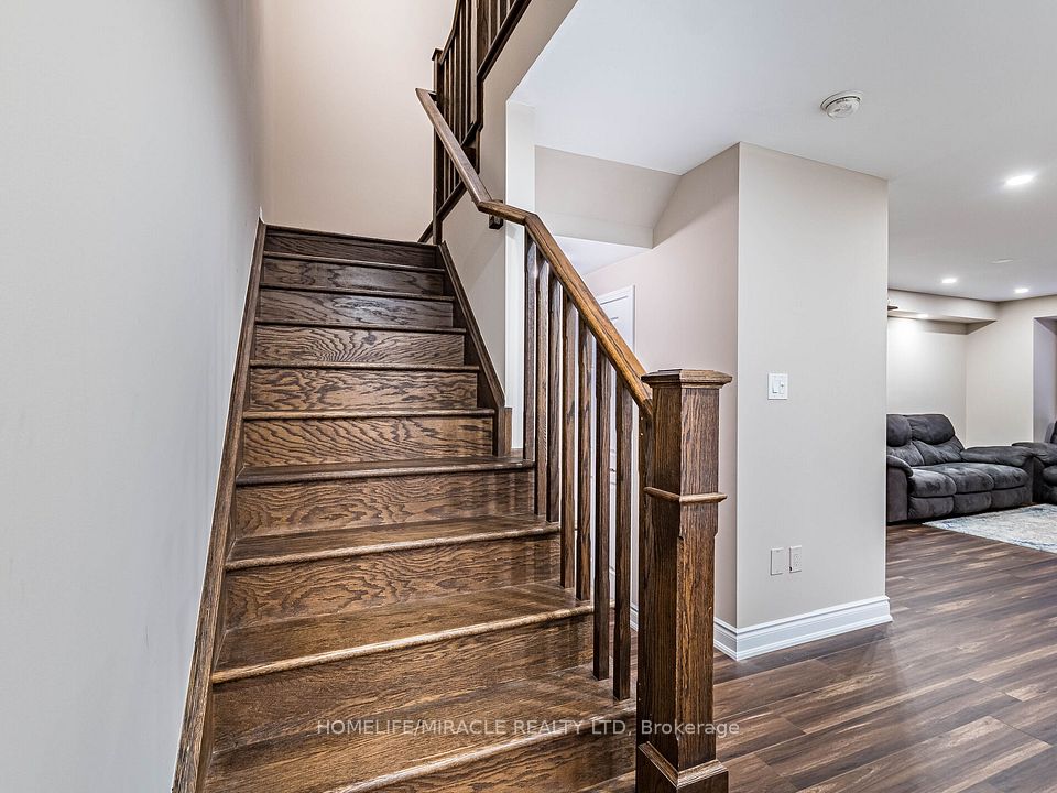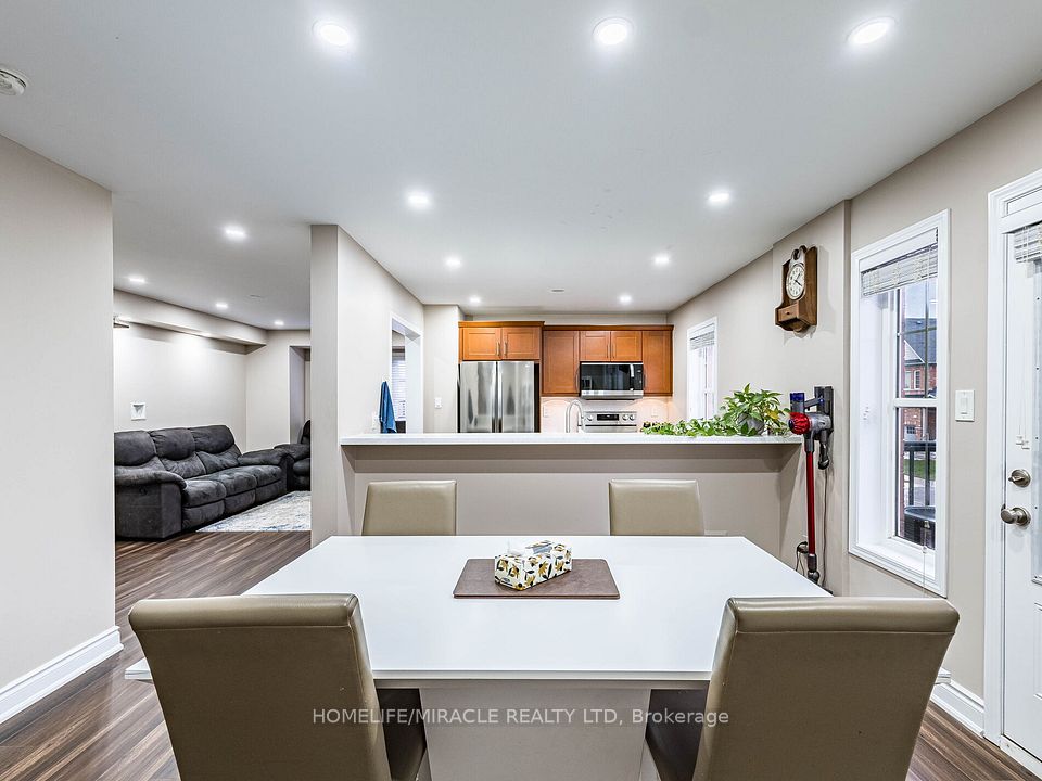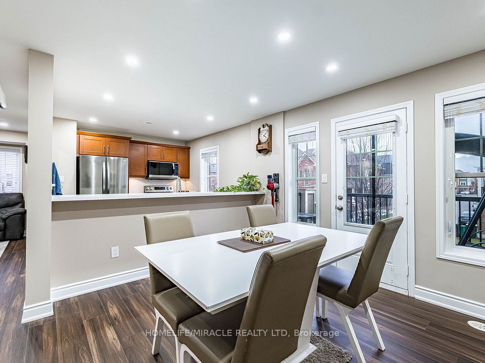 Absolutely Gorgeous!! Mattamy Energy Star Freehold Townhouse. Laminate Floors Throughout The Living & Dining Room, Leads You To Huge Balcony, Kitchen With Breakfast Bar & Stainless Steel Appliances, 3 Spacious Bedrooms, Master With Walk In Closet And Ensuite. Rarely Find 2 Full Washrooms On 3rd Floor. 3 Car Parking On Extended Driveway, Pot Lights, Mins Away To Mount Pleasant Go Station, Library, Parks, Hwy & Schools.