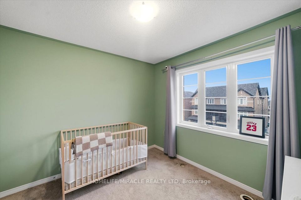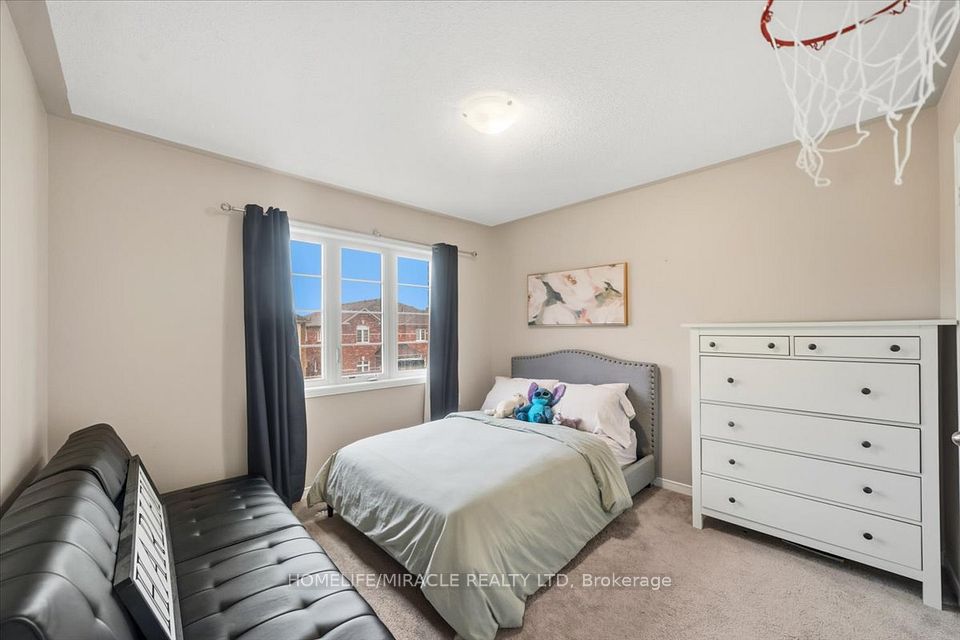 Stunning 3+1 bedroom, 3 washroom semi-detached home in a highly sought-after neighborhood, offering approximately 2100 sq ft of well-designed living space. This home features a double door entry, 9 ft ceilings on the main floor, and an open-concept layout perfect for modern living. The ground floor includes a convenient laundry area and a den that has been professionally converted into a 4th bedroom, complete with a large window and access to a walk-in closet-ideal for extended family or guests. Enjoy a spacious family-sized kitchen with stainless steel appliances, a breakfast area, and a walk-out to a covered balcony from the living area. The primary bedroom features a 4-piece ensuite and a walk-in closet. Conveniently located close to schools, plazas, community center, Etobicoke Creek, and all essential amenities.